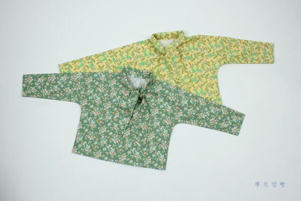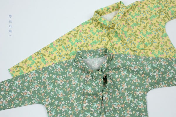 ブラウス グリーン花柄とパンツホワイトのセットで